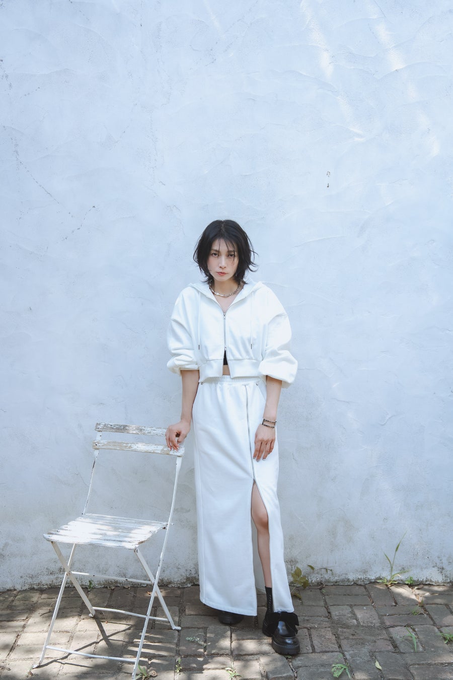 【予約販売】2wayジップスウェットスカート(White)